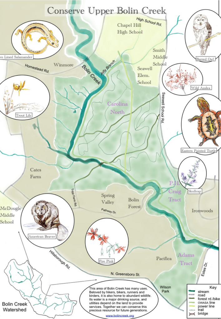 Over the years Friends of Bolin Creek have sought unsuccessfully to conserve this unique landscape of beech trees, hardwoods and wildlife habitat permanently through purchase and land conservation.
