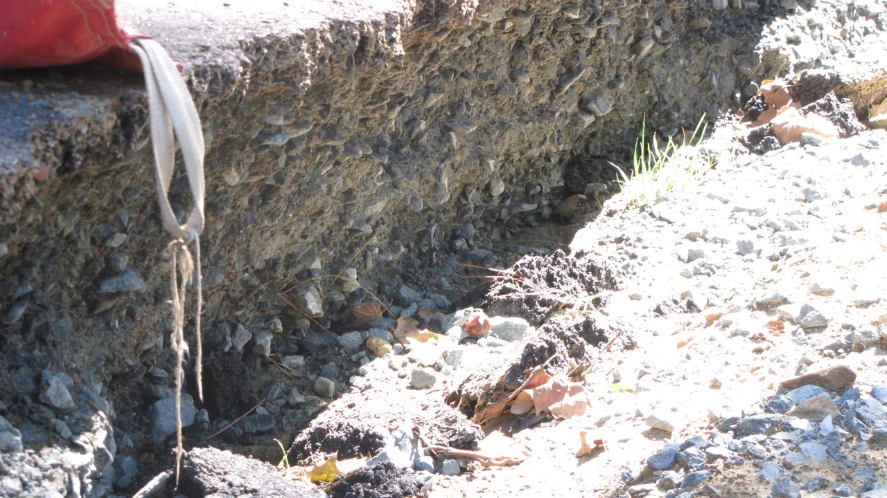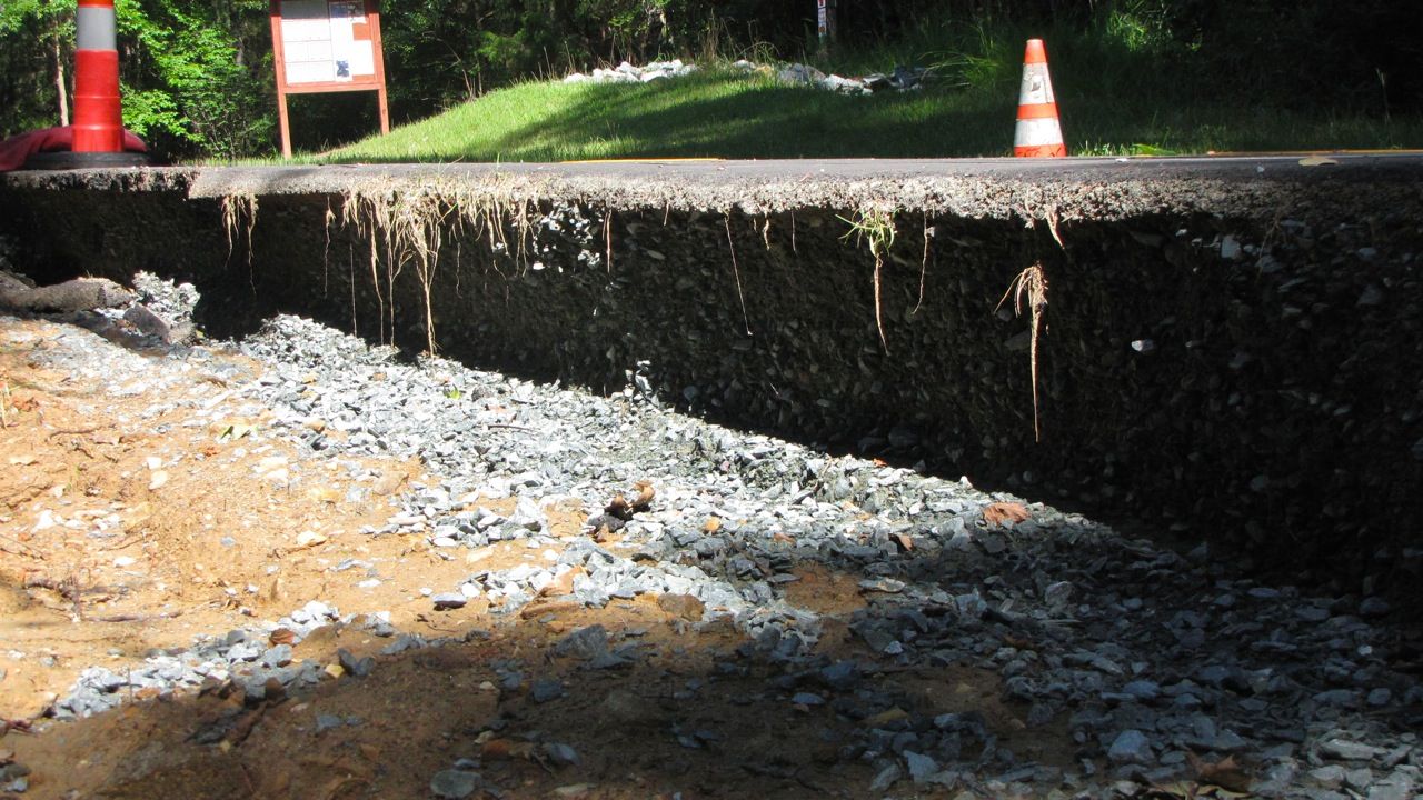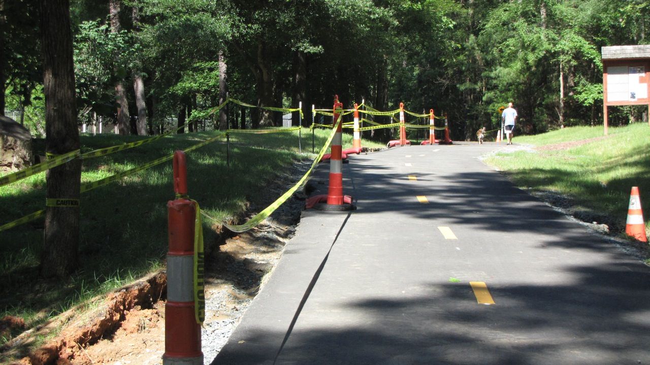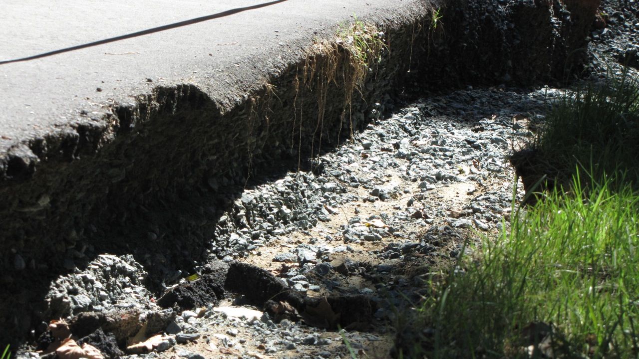 The substantial erosion of the areas next to the greenway foundation is shown in this dramatic photo. The greenway was constructed on top of what already served as a natural drainage way for Wilson Park.