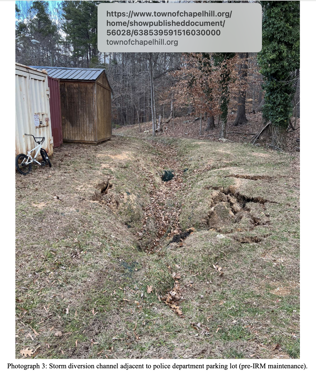 - DEQ should require the town to remove the eroding steep slope of coal ash above the Bolin Creek trail. This area has had continued erosion and stormwater problems.